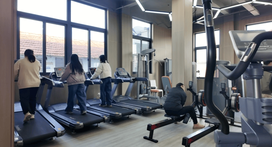 其中,健身房配置多种实用健身器械,满足居民基础力量与有氧锻炼需求;体质监测室提供基础体质检测服务,帮助居民了解自身身体状况,为科学健身提供参考。